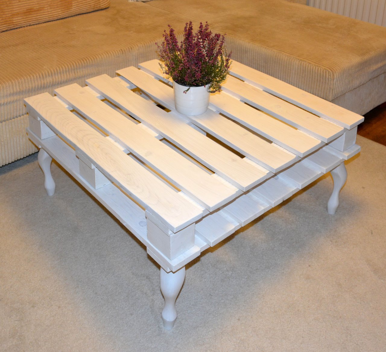 Stolik kawowy w stylu palety, 80x80x40, biały